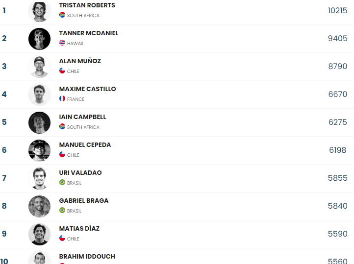 Le vainqueur de la catégorie homme engrangera 2500 points. 3000 points étaient à prendre à Arica et Itacoatiara, 3500 à Antofagasta.