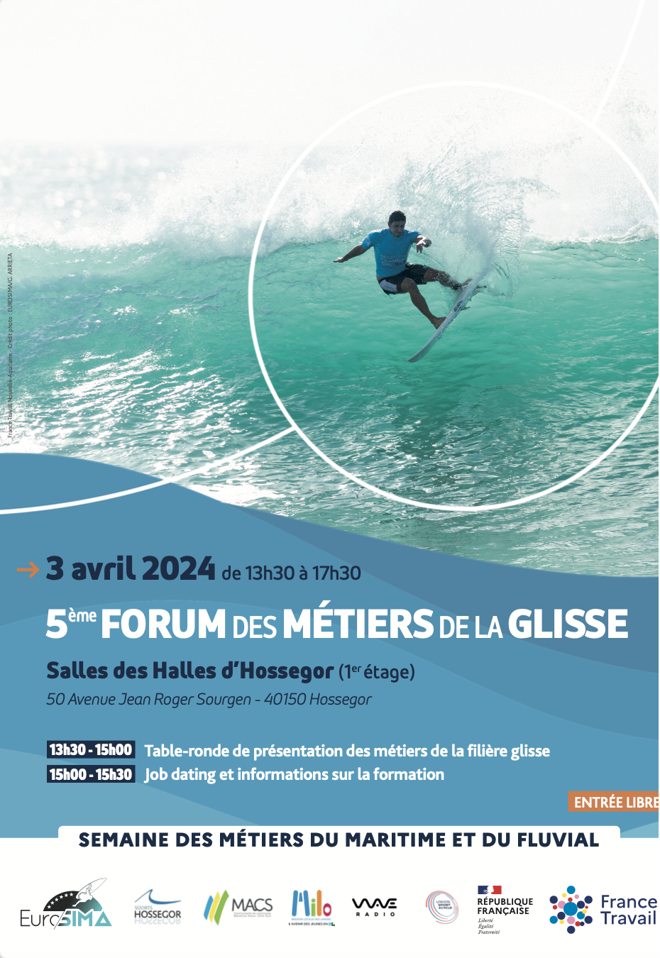 Le rendez-vous annuel pour les passionnés des métiers de la glisse revient pour sa cinquième édition début d'avril ! Le forum des métiers de la glisse, prévu le 3 avril à Hossegor, réunira professionnels du secteur et aspirants à une carrière dans ce domaine. Organisé par EuroSIMA en collaboration avec France Travail, la communauté de communes MACS et la ville d'Hossegor, cet événement réunira plus d'une quinzaine de marques emblématiques telles que Rip Curl, Volcom et Pyrenex, ainsi que plusieurs institutions de formation.