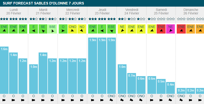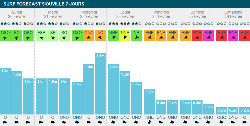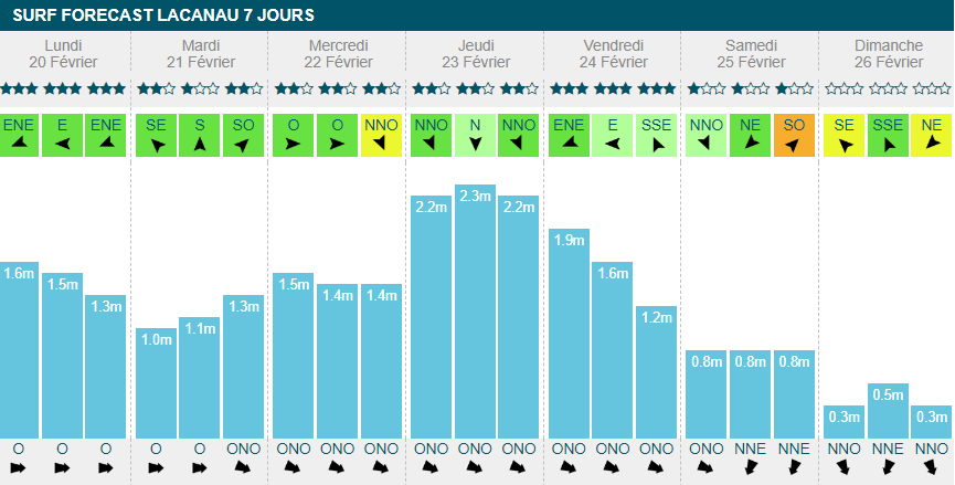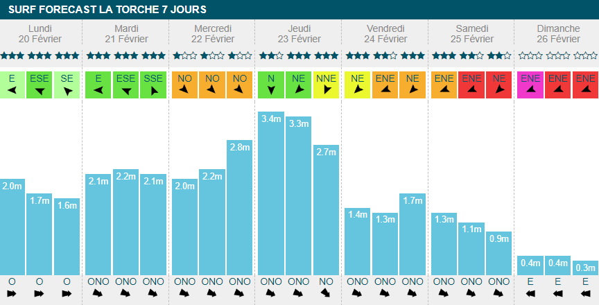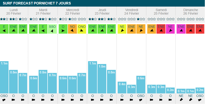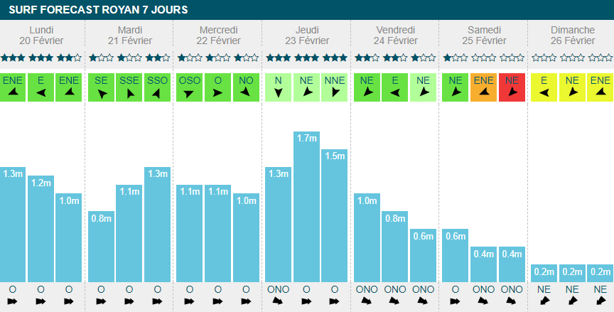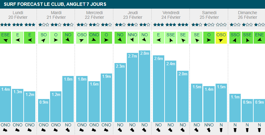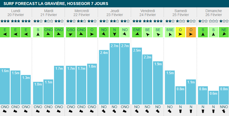 dimanche banniront le surf de leur journée. Sinon, ça surfera toute la semaine avec un gros pic à 2m70 dans la journée de