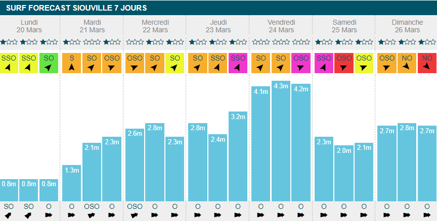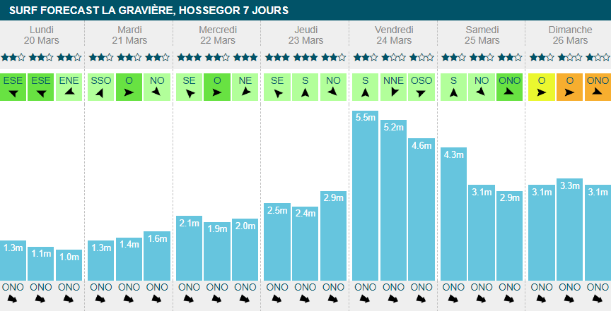 En deuxième partie de semaine, à partir de vendredi, les spots changeront du tout au tout. On attendra 5 mètres dans la matinée de vendredi et beaucoup de vent en fin de semaine.