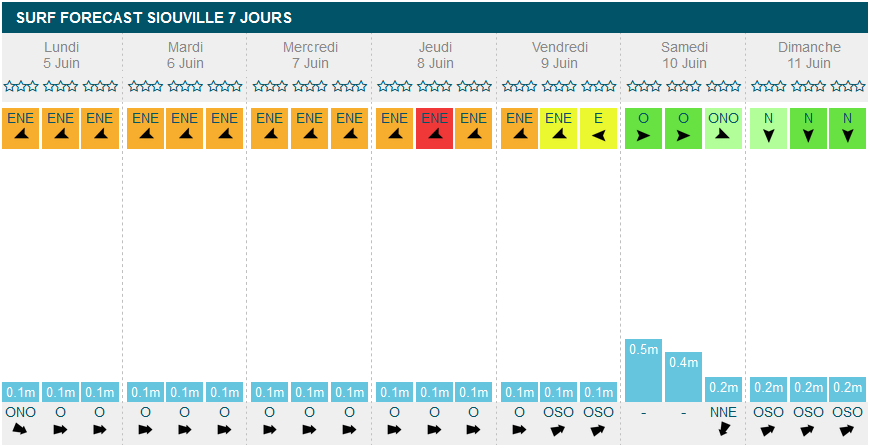 Un vent d'est soufflera dans la même direction que cette houle qui ne fera que nous passer sous le nez. Pour annoncer un peu de positif à nos surfeurs et surfeuses de la Manche, qui font souvent les frais d'un manque de vagues, les températures seront suffisamment élevées pour profiter de l'océan ou d'une bonne balade en vélo.