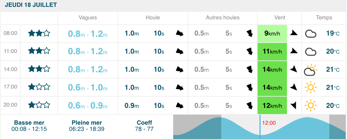 Dans les Landes, il faudra attendre demain pour voir revenir une période correcte. Mais la houle revient petit à petit, avec 1 mètre et 10 secondes de période prévus pour jeudi, ce qui promettrait presque de nous offrir quelques bonnes vagues, mais un conseil allez surfer tôt avant que le vent ne se lève !