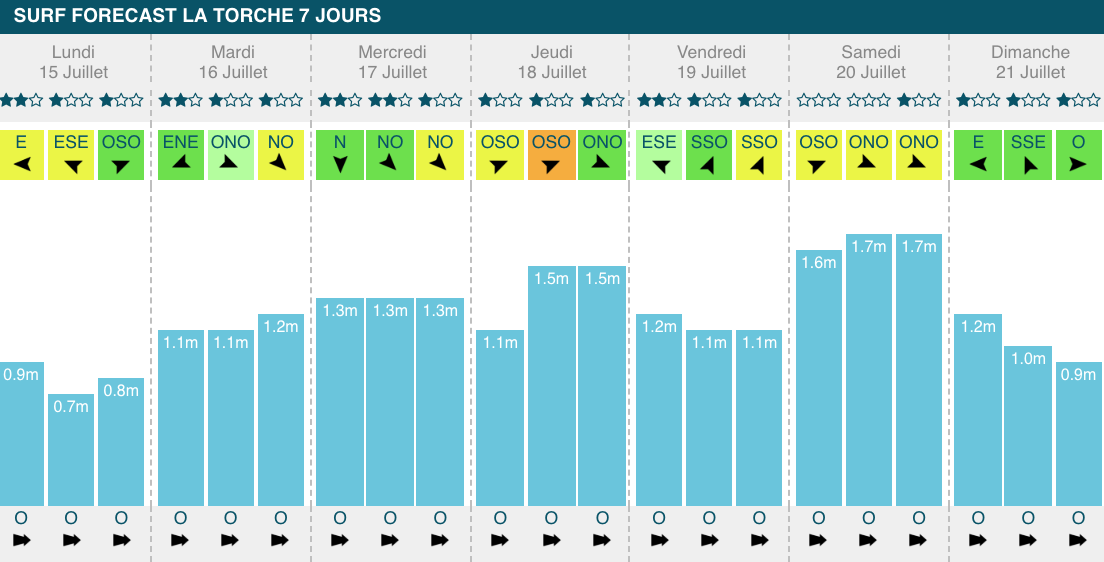 La Torche pourrait bien être la mieux placée pour profiter de ce retour de swell. Avec une taille de vague relativement consistante en milieu de semaine, il n'y a plus qu'à espérer que le vent ne vienne pas tout gâcher.