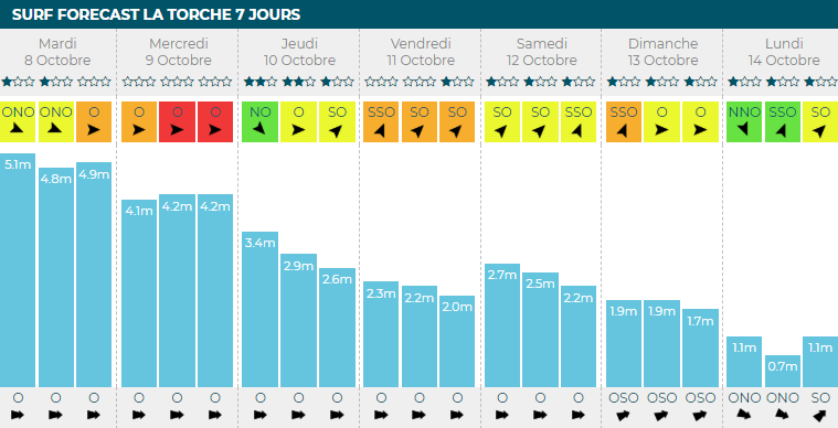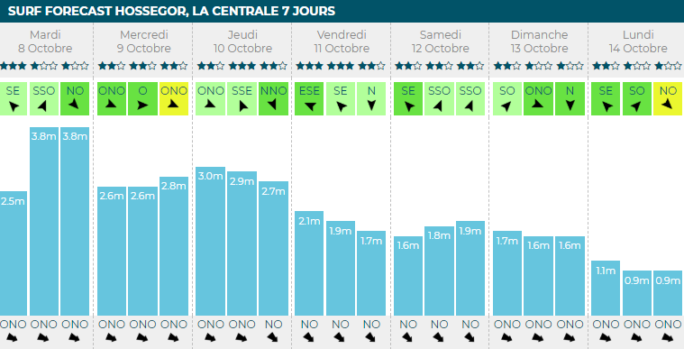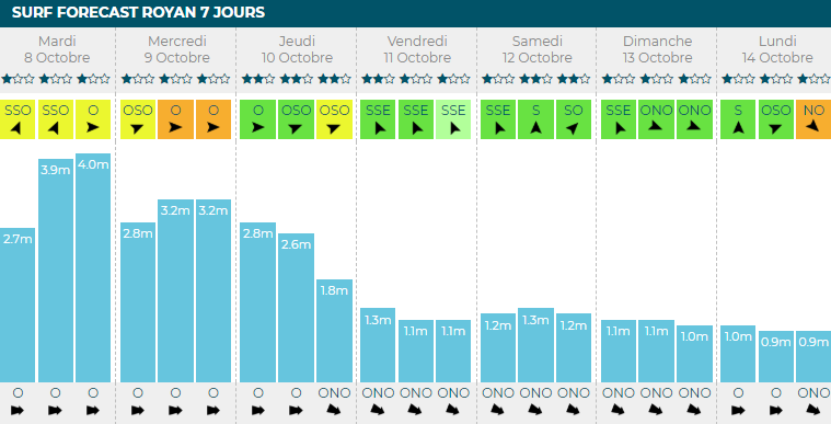 3m à 1,7m/2m à partir de vendredi, avec des vents autour des 10km/h, et certaines matinées seront touchées par un vent favorable orienté est-sud-est.