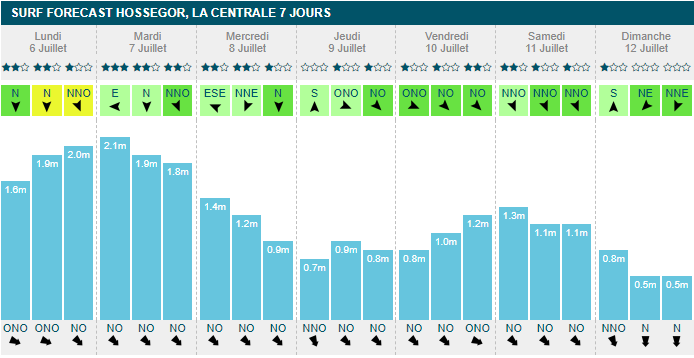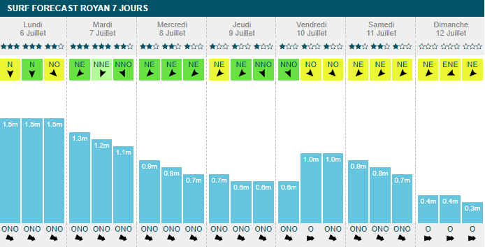 période) et un vent offshore le matin à 9km/h. Le reste de la semaine est à