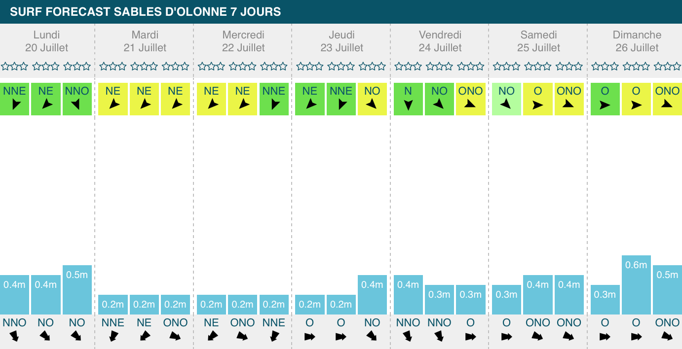 Cas de figure semblable en Charente-Maritime. Si le vent sera favorable en début de semaine, la houle sera absente. Pas d'améliorations prévues sur les côtes charentaises, où l'été s'est définitivement installé.