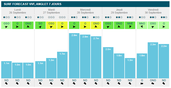 Le Pays basque est plus épargné par le vent que le reste des départements de la façade Atlantique cette semaine. Bien que moins fort, ce dernier sera tout de même résolument onshore et donc à surveiller de près. La houle sera aussi de la partie, on attend du très solide notamment mercredi : 2m90 à la série, 12s de période et vent d'ouest à 17 km/h.