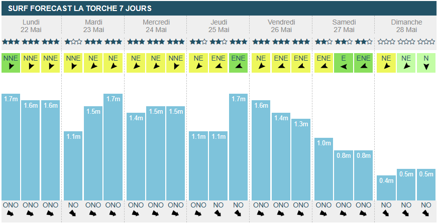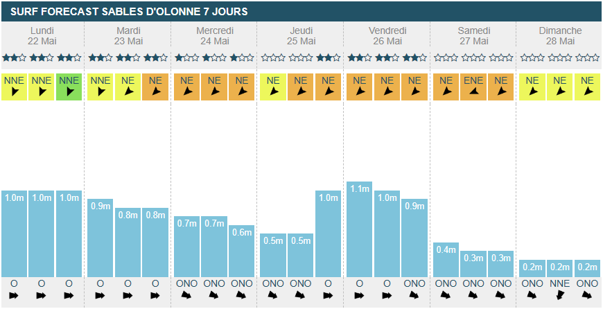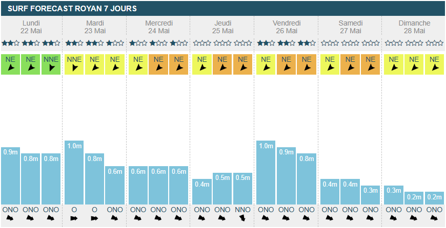 Dans le 44, vous ne serez pas gâtés par les vagues en cette (quasi) dernière semaine de mai. Votre seule option sera de descendre voir ce qu'il se passe bien plus au sud si vous en avez l'occasion.
