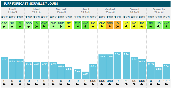 Cette semaine dans la Manche, les éléments ne s'accordent pas. La houle manquera sur les jours où elle ne sera pas accompagnée de vent à plus de 20 km/h, trop forts pour une session. Un petit surf est tout de même envisageable