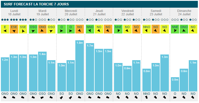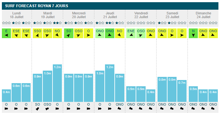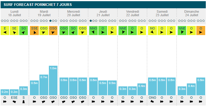 Malgré la période trop faible sur une grande majorité de la semaine, un petit surf débutant pourra s'envisager jeudi matin : 70cm à la série, 10s de période, vent sideshore (Nord Nord Ouest) à 12km/h.