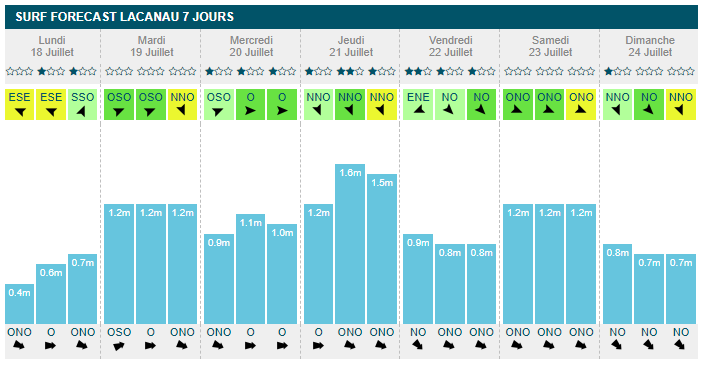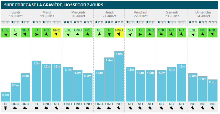 Le dernier créneau se dessinera ensuite vendredi matin, avant que la période ne chute trop : 1m de houle, 9s de période et un vent onshore à 13 km/h, qui s'intensifiera dans la journée.