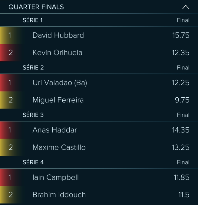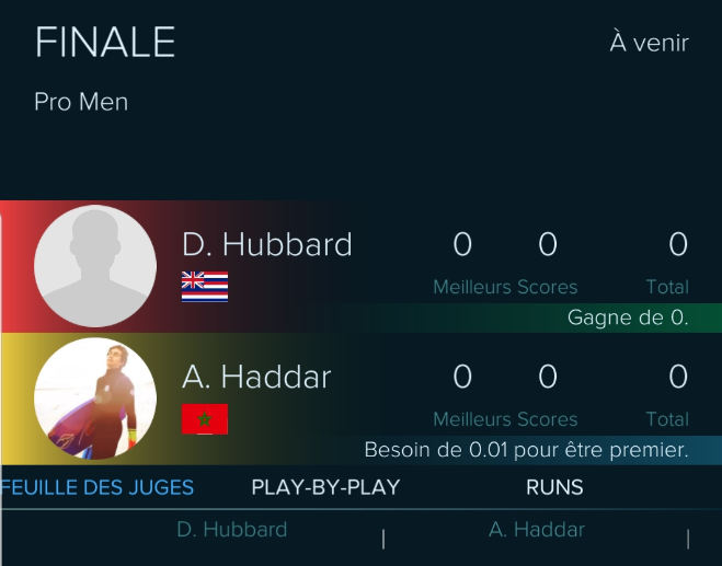 Après avoir vaincu le français Maxime Castillo en quart, puis donc le sud-africain en demi, le voilà face à David Hubbard l'hawaïen pour la finale de cette grande compétition qui aura lieu demain sur cette magnifique plage de Lisbonne. Anas Haddar semble résolu à hisser au plus haut possible le drapeau marocain au Portugal.