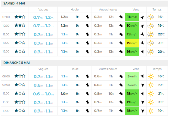 faible mais plutôt cross-onshore le samedi sera sans doute plus favorable le