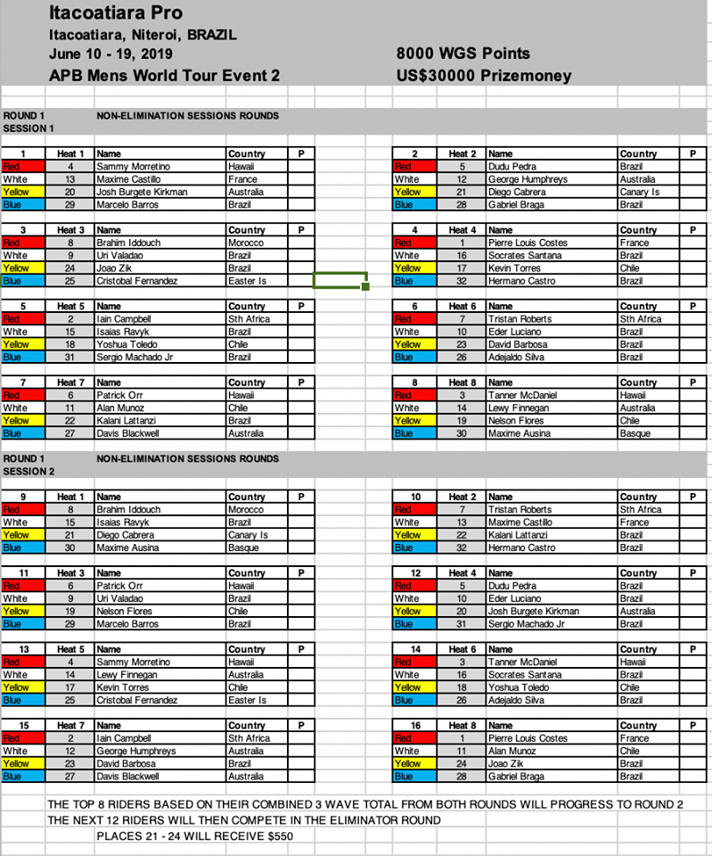 Janeiro, où se déroule la compétition. Celle-ci est en stand-by depuis le 10 Juin, en attente des bonnes et grosses conditions comme le spot à l'habitude d'offrir. Le prochain call est prévue pour aujourd'hui 14 Juin. Les séries devraient donc commencer incessamment sous peu.