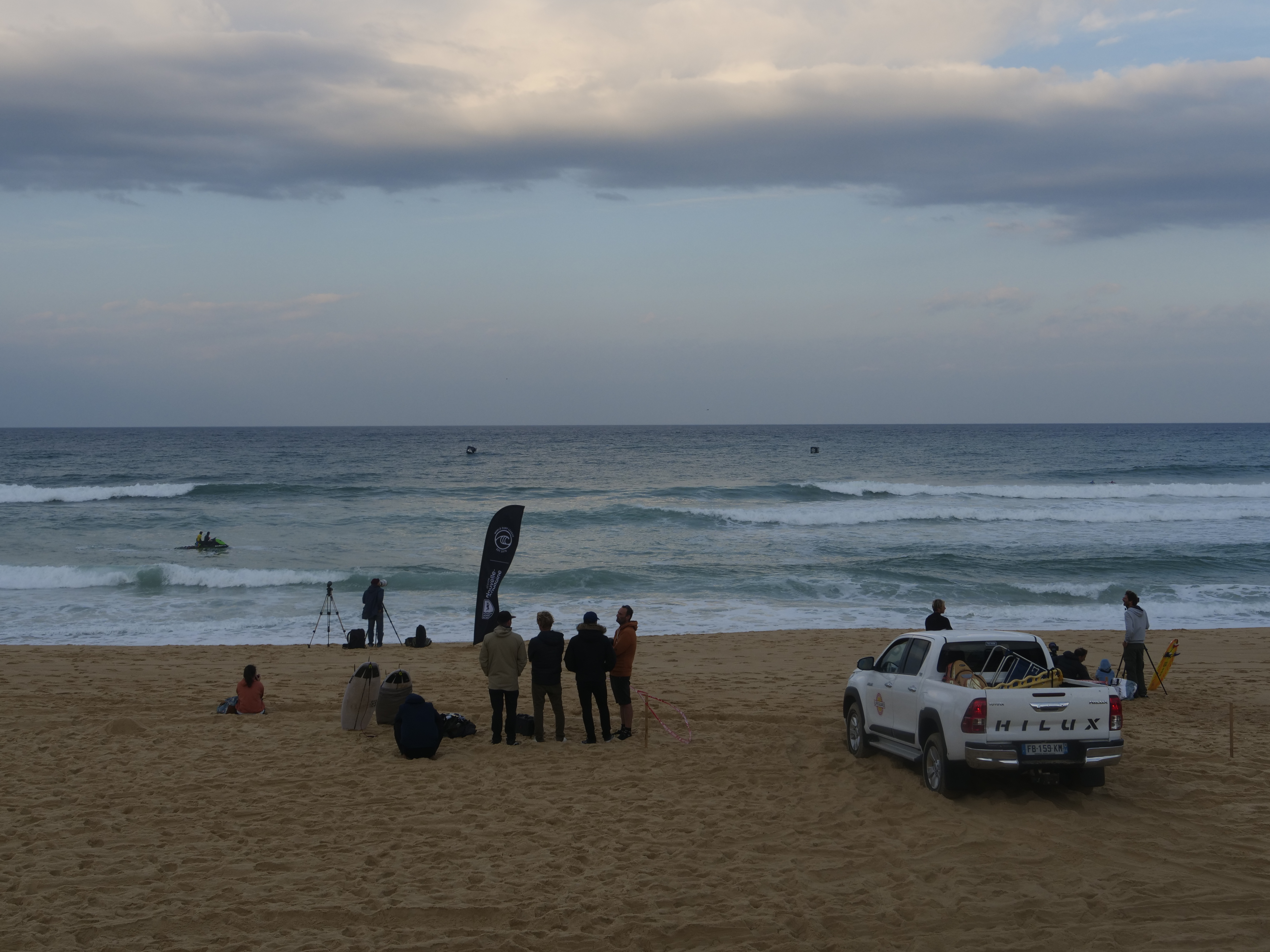 À 9h sur la dune, quelques sets entrants sur une marée descendante semblent suffire aux pros : le premier heat (série 14 du round of 96 masculin) se termine sur des scores à 6 et 7 points.