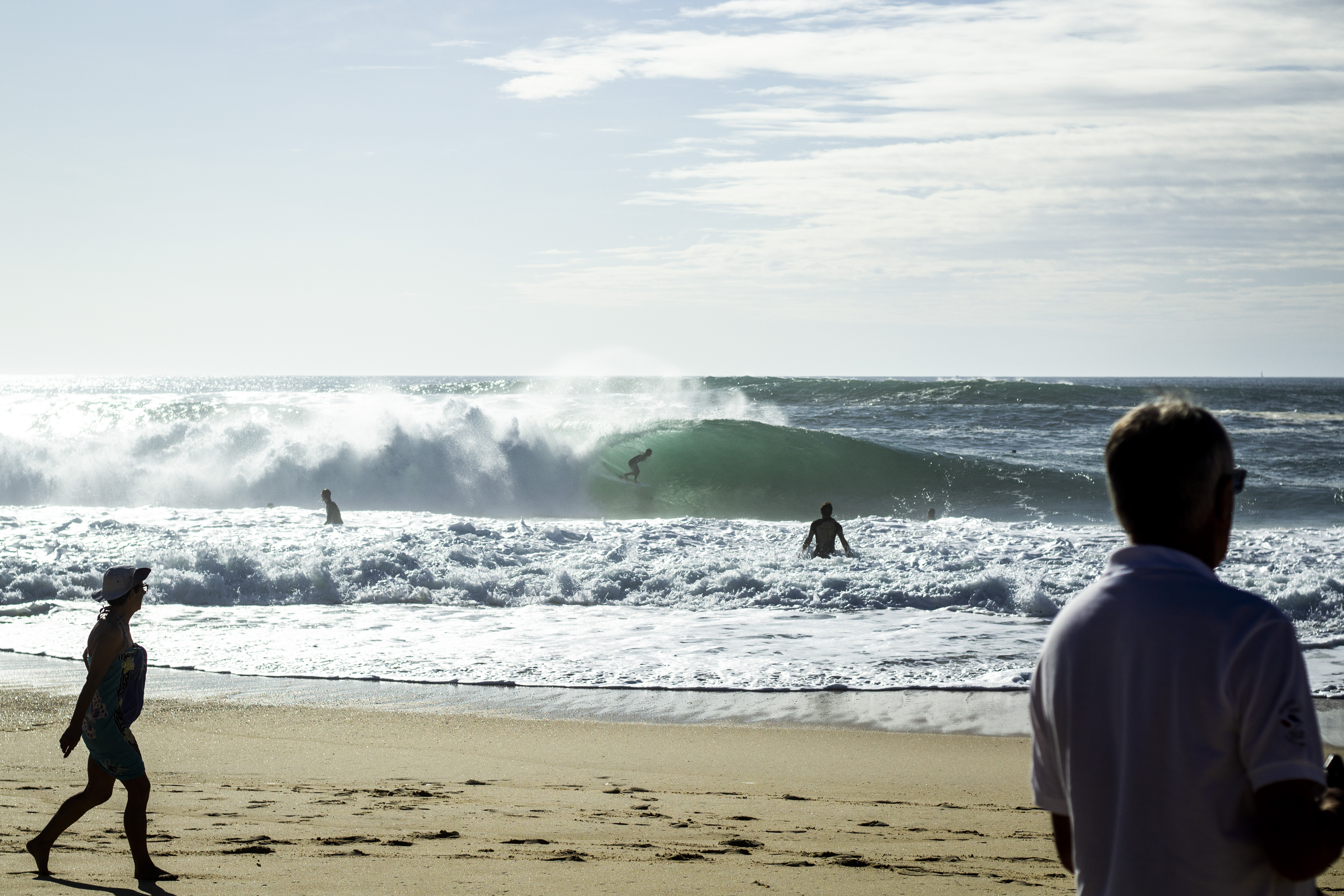 Le call a été lancé avec un vent légèrement défavorable, ce qui n'empêche pas à certaines barriques de former de larges échappatoires et d'évacuer leur souffle. Kyllian Guérin et son allure fugitive ne s'en sortent pas si mal. Tout comme Didier Piter même si sa 6'4 y restera. Le jury du Royal Barrique, Thomas Baché, François Liets et PV Laborde pour ne citer qu'eux, s'en donnent à cœur joie. Des fois ça passe, comme pour Dimitri Ouvré, William Aliotti et Nelson Cloarec, qui ont sans doute pris certains des plus beaux tubes de la journée. Des fois ça casse. Et on se doit d'avoir une pensée pour ces misérables planches retrouvées désossées sur la plage, malencontreusement tombée dans les mains d'une zone d'impact impitoyable.
