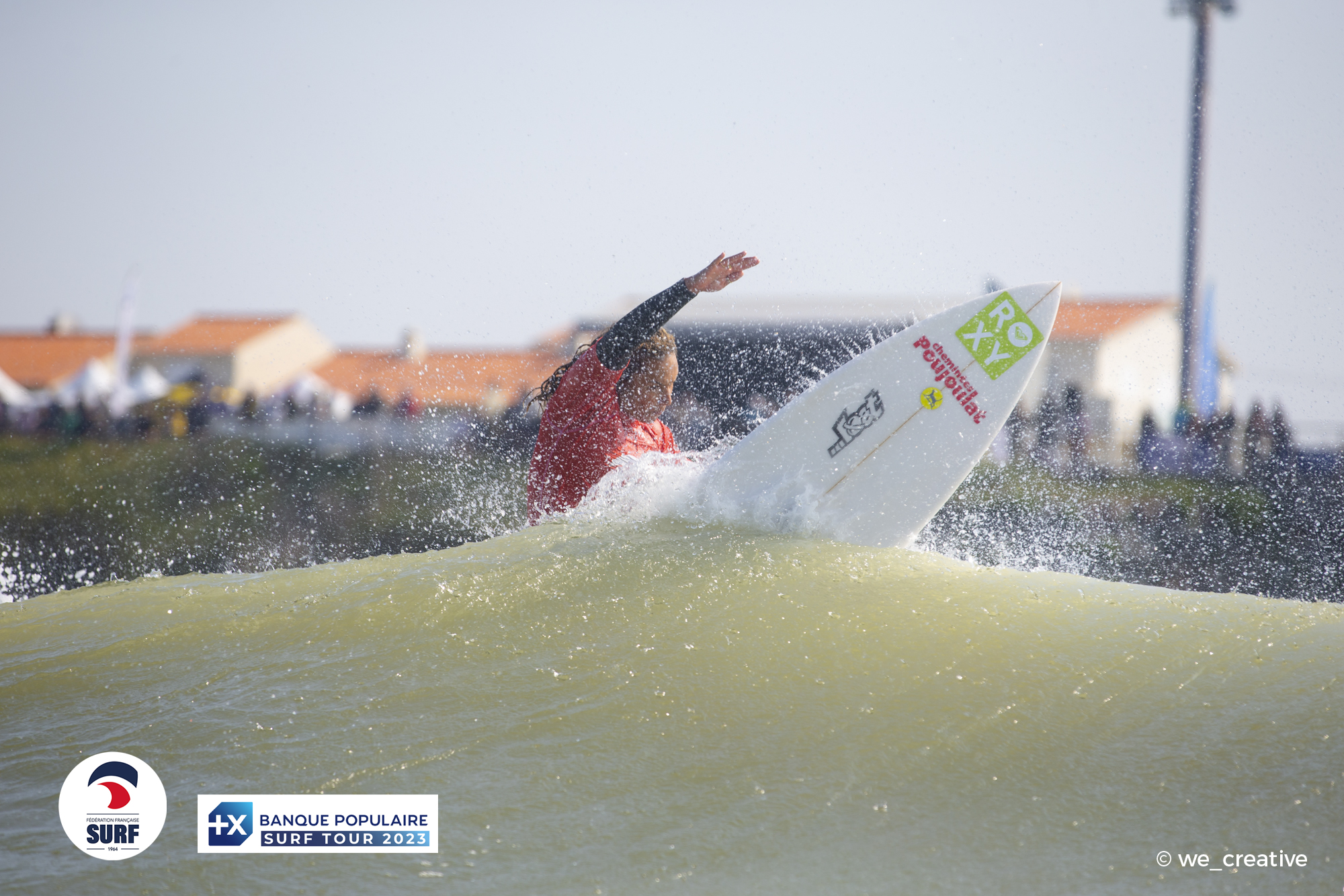 Un épilogue heureux et différent de celui vécu 30 minutes plus tôt par Hina Conradi. En tête jusqu'à 5 secondes du buzzer, l'autre locale du spot (qui a privilégié les gauches) n'a rien pu faire quand Tya Zebrowski s'est échappée sur une longue droite pour envoyer un roller et un énorme re-entry layback. Un 8.17 synonyme de coup de massue pour le public et la Vendéenne.