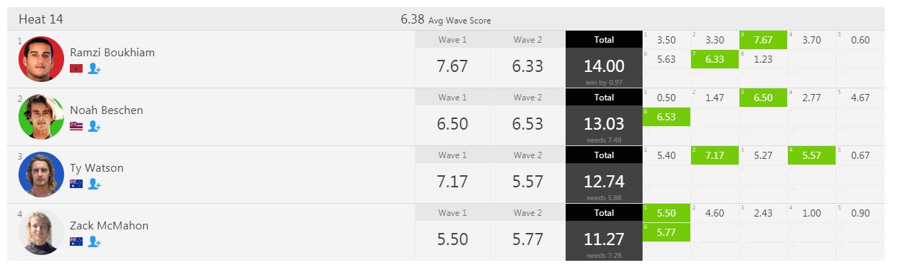 Malheureusement, l'aventure de Ramzi sur les terres australiennes prendra fin au Round 6 après une série très bien disputée jusqu'à la dernière seconde et finira 3ème de sa série avec un score total de 13,07 points à seulement 0,19 points de différence de la deuxième place qualificative au prochain round.