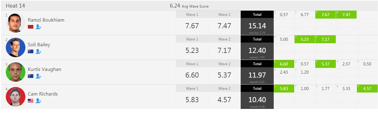 Au second Round de Ramzi, qui reste toujours concentré, une dominance sur la majorité de la série ou il va scorer sa meilleure vague de la compétition avant 10 secondes de la fin de la série qui est de 7,67 points pour atteindre un score total de 15,14 points, son meilleur score de la compétition.