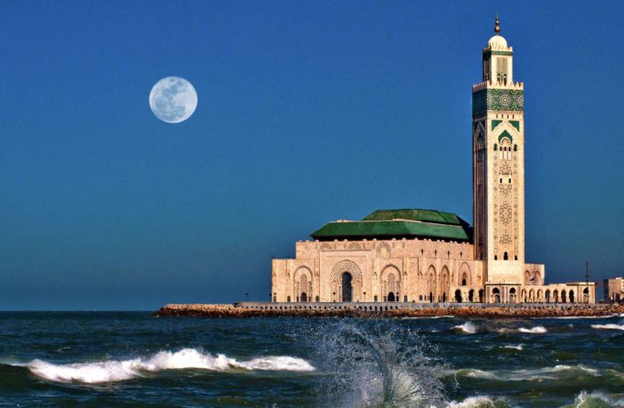 de Mohammédia à Casablanca, le port de la ville et la mosquée Hassan II. En
