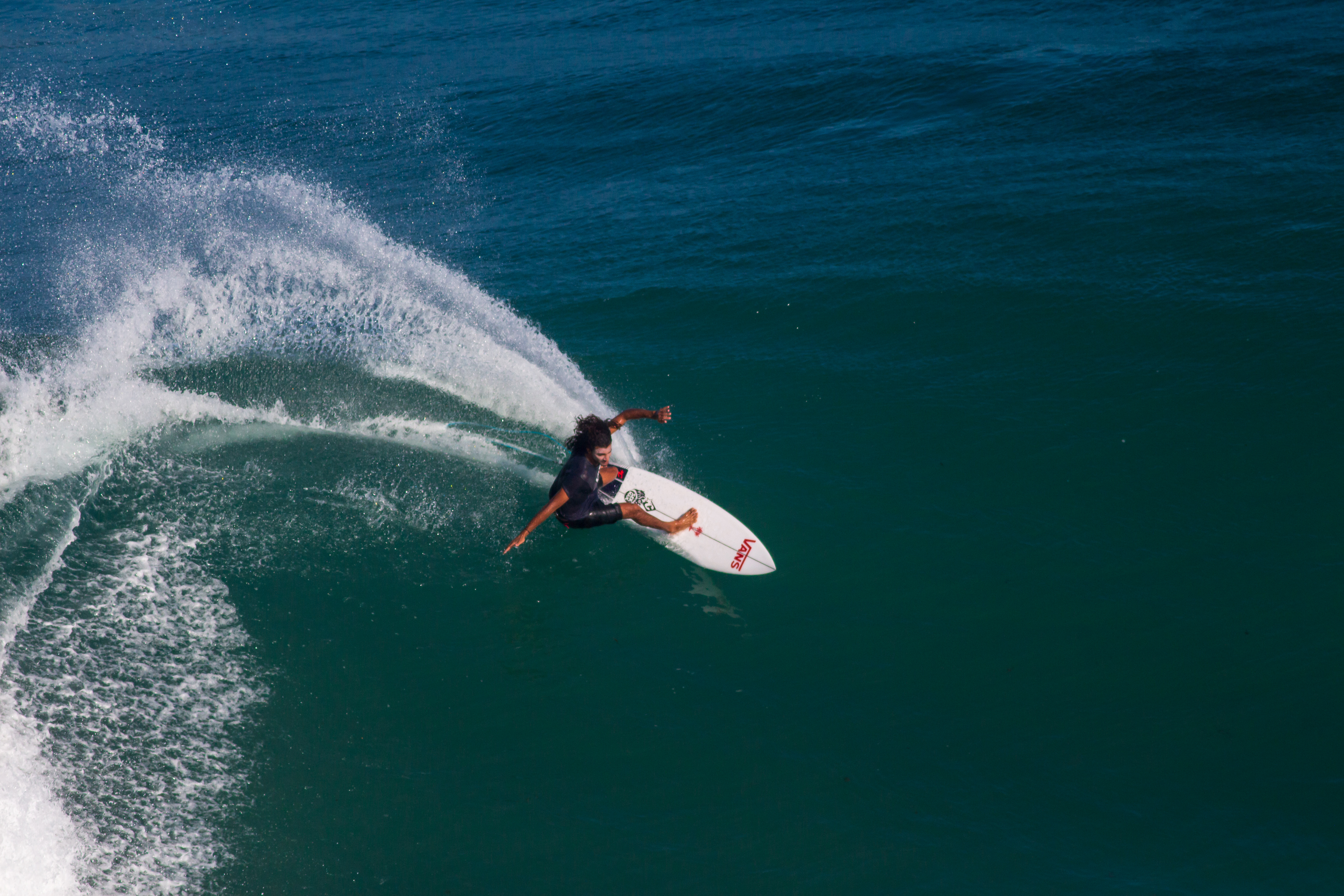 Oui j'aime bien avoir de bons ailerons sous la board, c'est essentiel ! Je bosse avec Deflow, c'est une marque qui fait des dérives dans le Pays Basque, j'ai mon modèle qui va sortir en septembre d'ailleurs ! J'espère que les gens vont aimer !