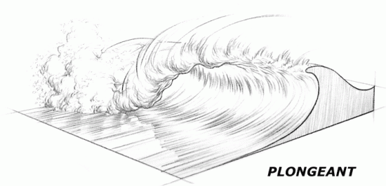 La transition entre l'eau profonde et peu profonde est brute, la vague gravit la plage avant que la crête puisse s'enrouler. Lors de ces déferlements le courant de retour des vagues est souvent important et potentiellement dangereux pour les baigneurs.