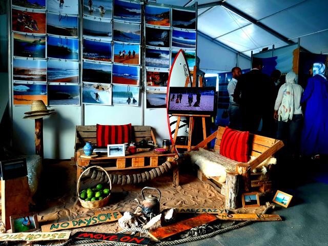 Le surf se devait d'être present dans cet événement qui se déroule dans cette ville connue pour le Surf et sa vague mythique Ras Lafaa. C'est ainsi que deux passionnés de Surf et membre de l'association ASBS : Yassine Belhouari photographe de Surf et Belahnech Amine propriétaire du café Wave & Chill ont décidé de presenter dans un stand la plus belles photos de la vague de Safi dans un décor de plage.