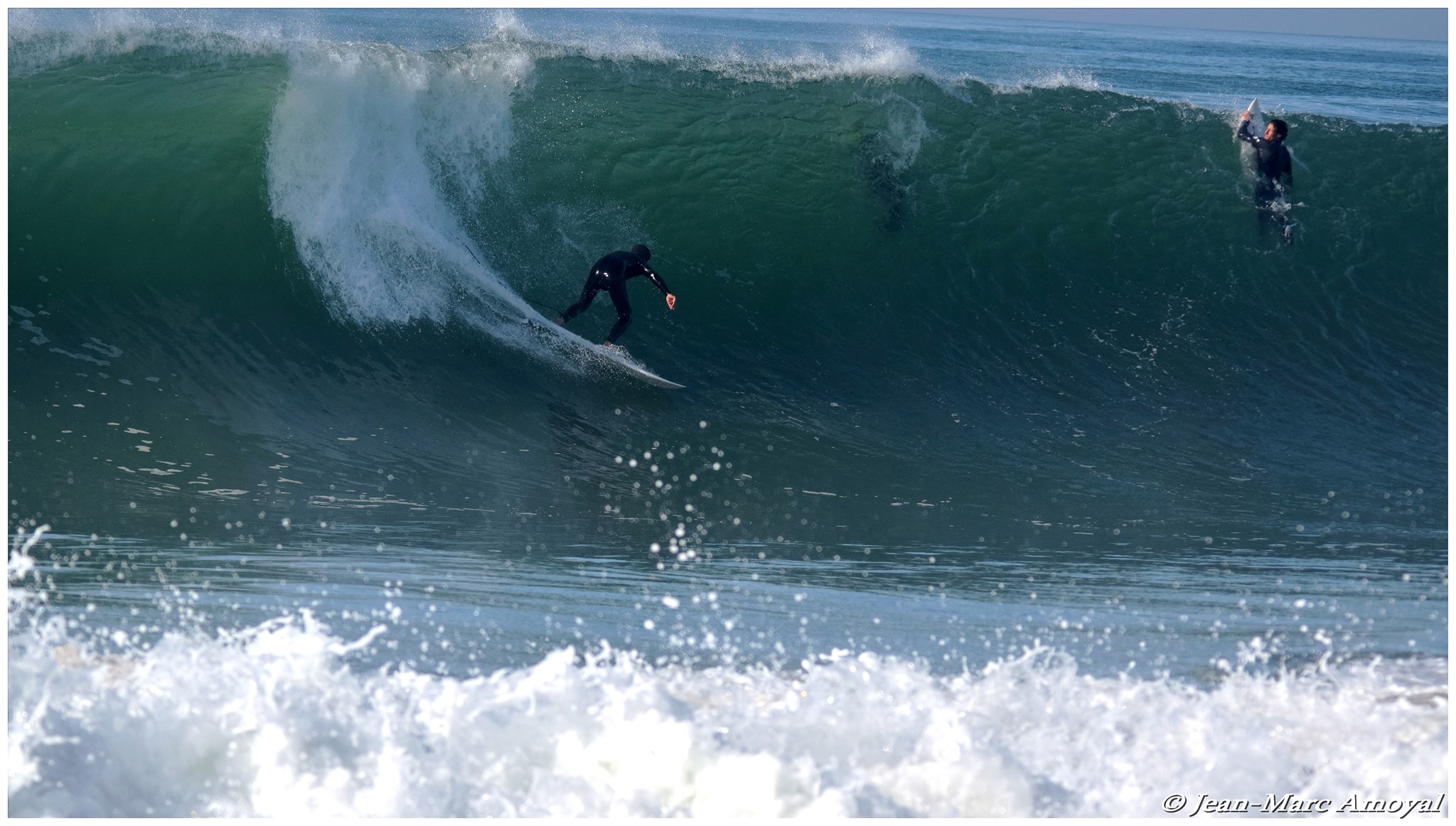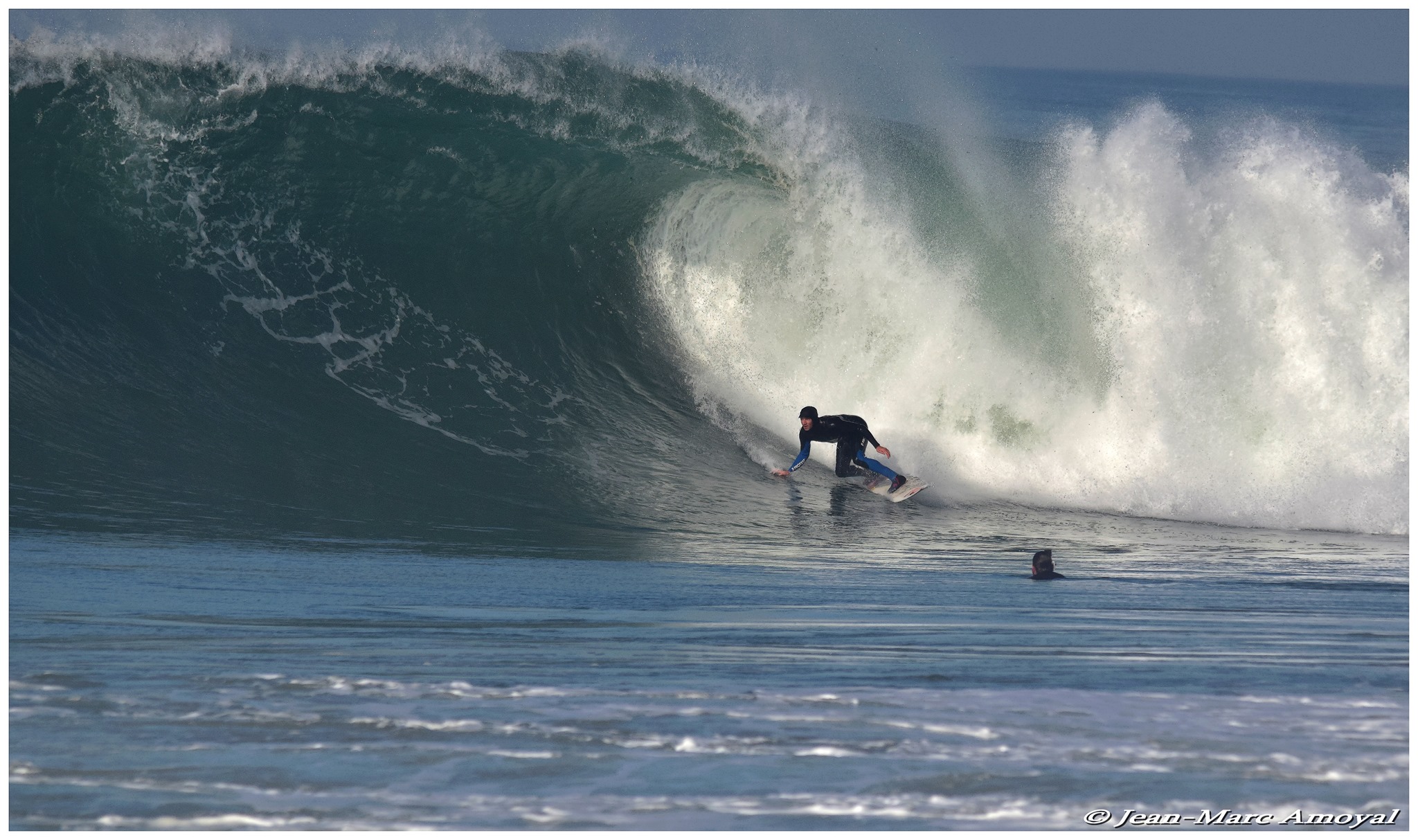 "Il y avait de bons barrels en gauche et en droite, qui atteignaient les deux mètres, peut-être trois dans les séries. Le temps était magnifique, la température agréable et il y avait du beau monde à l'eau : une belle journée !", commente le photographe Jean-Marc Amoyal.