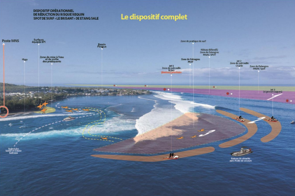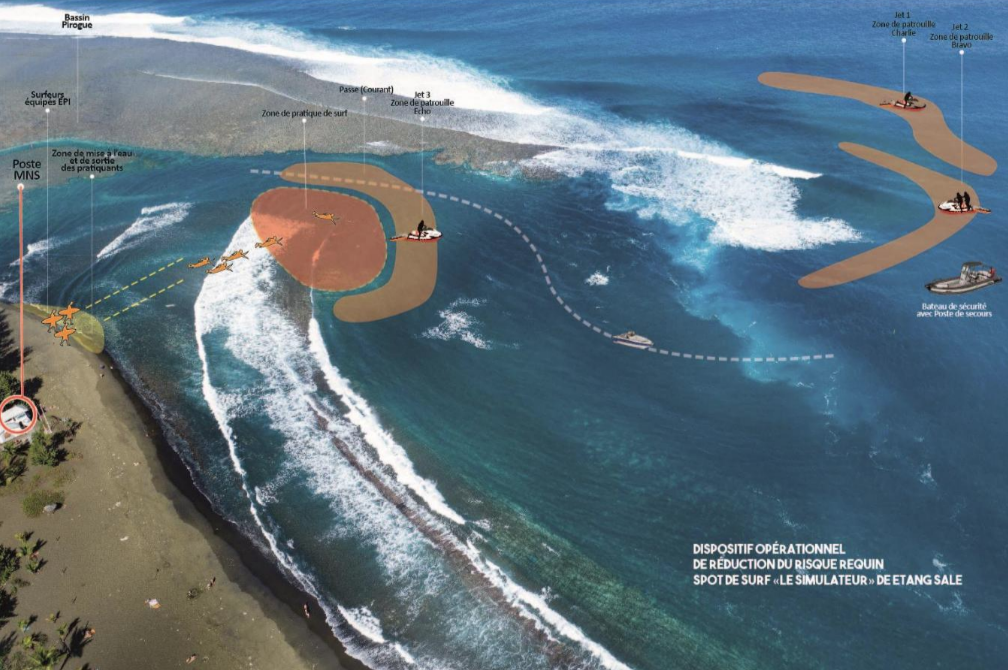 Ces zones visent à sécuriser la pratique du surf sur les spots locaux, grâce à un protocole bien précis visant à réduire les risques d'accidents liés aux attaques de requins. Moyens humains, matériels et technologiques, aucun détail n'est laissé au hasard : vérification qu'un effort de pêche a été mis en œuvre par le Centre Sécurité Requin, déploiement d'une brigade nautique équipée de jet ski en charge de la surveillance de la zone et vérification du port d'équipement de protection individuelle par les pratiquants.
