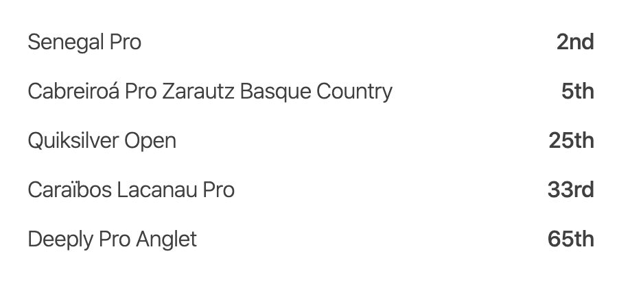 L'année 2019 a permis au Marocain de se faire un nom. À Zarautz, il s'empare de la 5e place, écartant au passage le leader au général du QS Jorgann Couzinet. Au Sénégal, il se hisse en finale, mais voit sa longue épopée stoppée par un Tim Bisso alors intouchable.