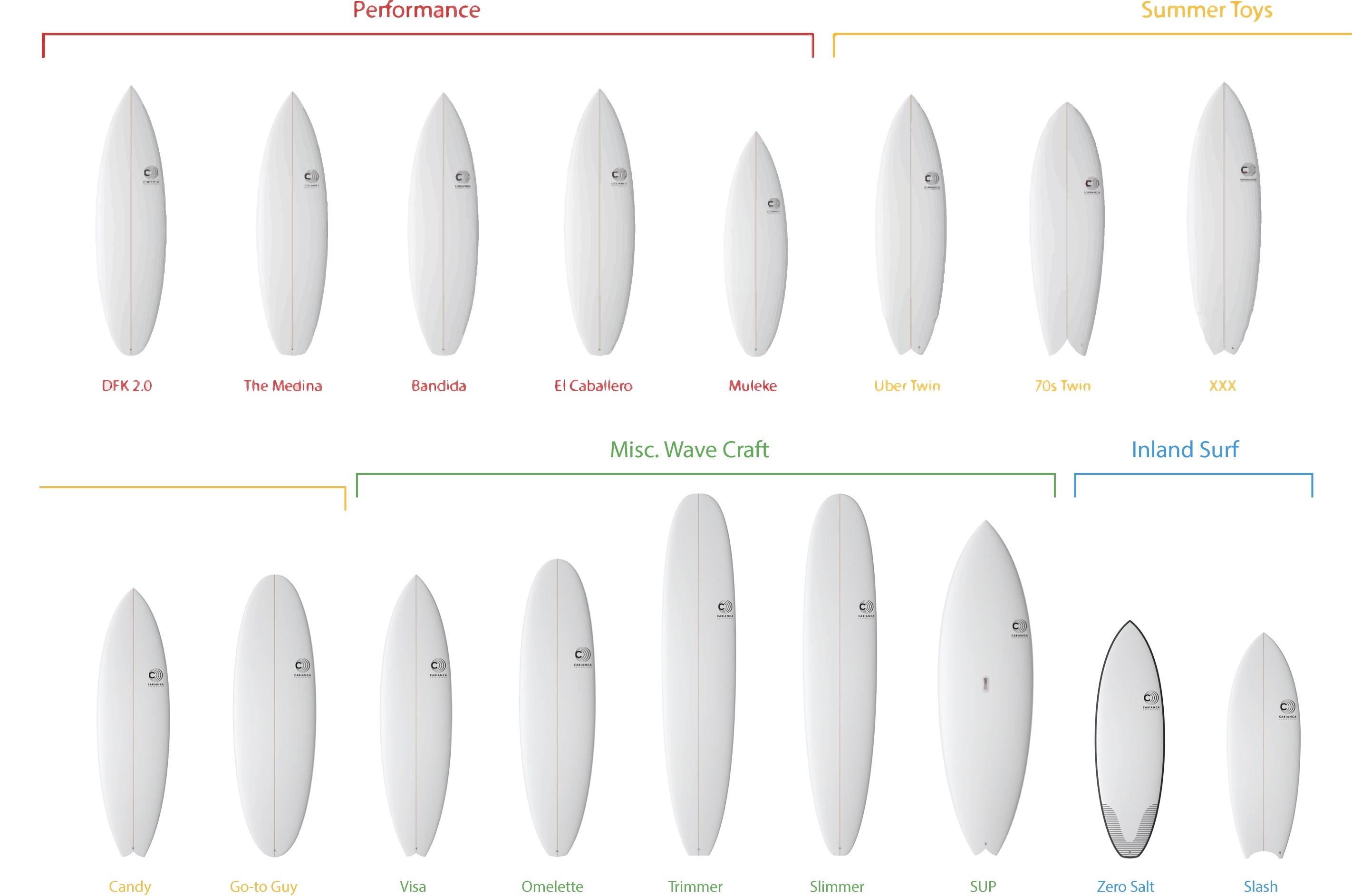 Les modèles de planche Cabianca (sur mesure) en précommande :