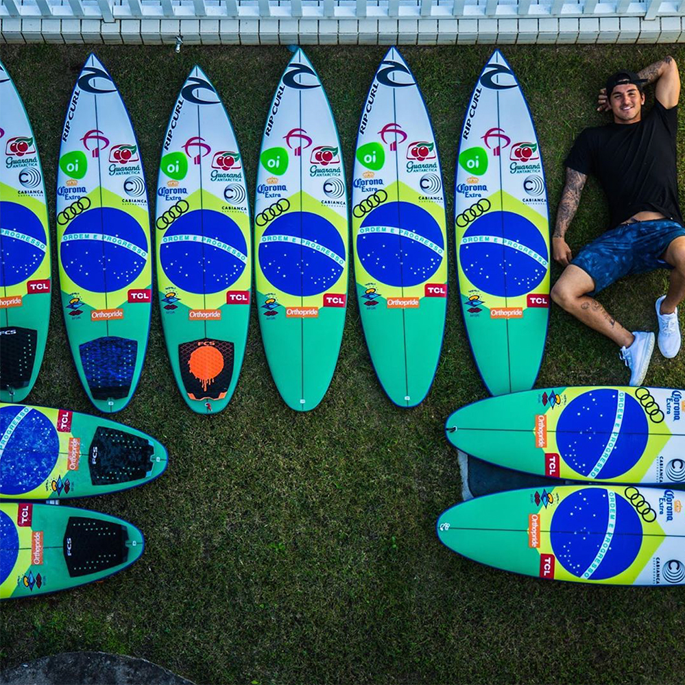 Le shaper de la marque Cabianca Surfboards, Johnny Cabianca, a grandi en surfant avec le beau-père de Gabriel Medina, Charlie, dans leur ville natale de Maresias, au Brésil. Il a fabriqué la première planche de surf de Gabriel alors que le double champion n'avait que quatre ans. En 2009, Cabianca a déménagé au Pays Basque espagnol et a commencé à façonner des planches pour Gabriel sous le label Pukas. En 2016, il a créé son propre label et a fourni à Gabriel environ 120 planches par an, soit 10 pour chaque événement CT.