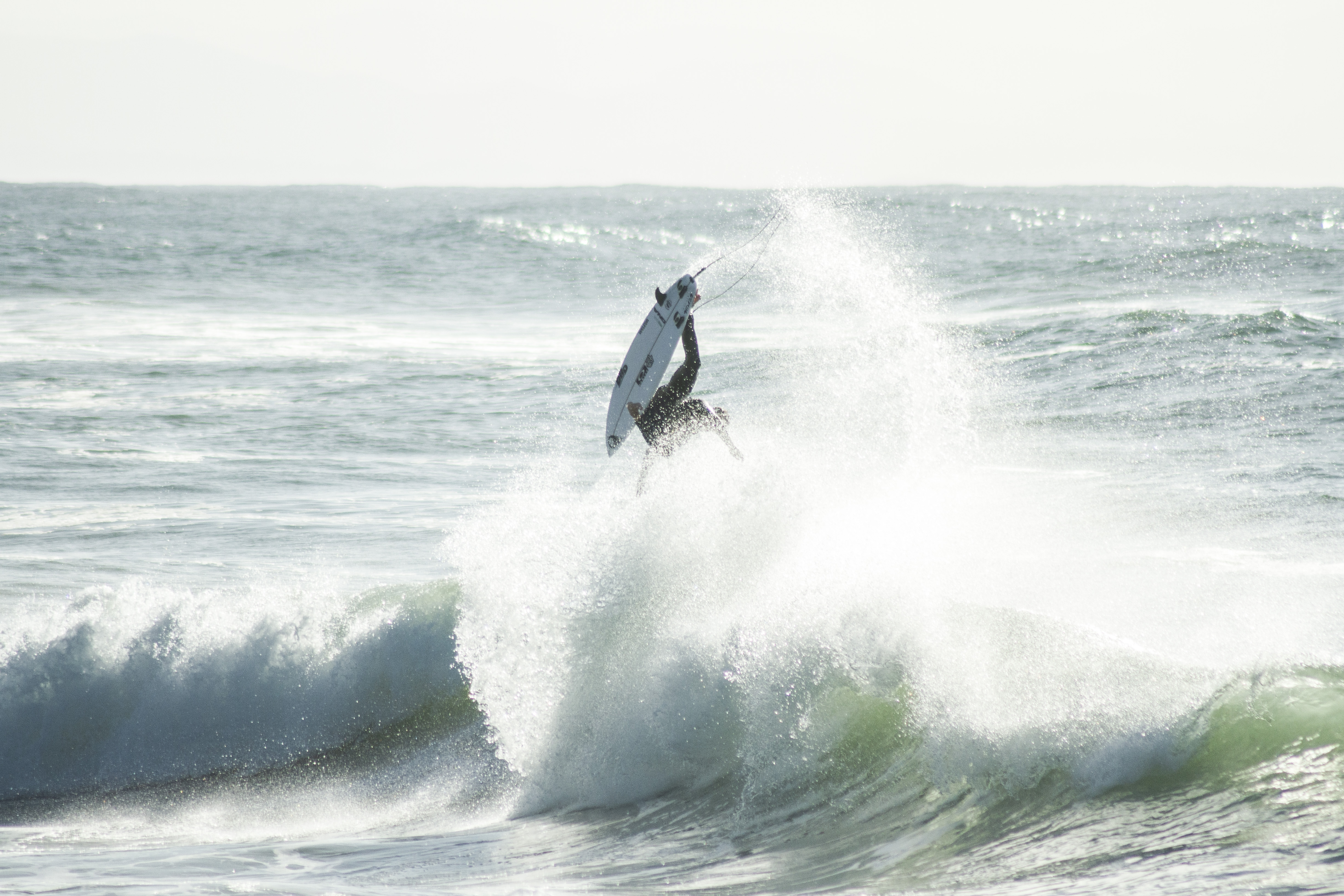 L'heure était donc à la quête du repli. Et certains pros, à l'image de Kelly Slater, Jorgann Couzinet, Ace Buchan, Julian Wilson ou encore William Aliotti, n'ont pas résisté à l'idée de trouver quelques bouts à Capbreton, où les spots étaient davantage protégés du vent.