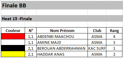 En compétition Bodyboard Open c'est Abderrahman Berouan qui remporte la finale devant Anas Haddar, Amine Majd et Abdenbi Maachou qui sont respectivement deuxième, troisième et quatrième de la compétition et sont tous qualifiés pour le circuit national pro.