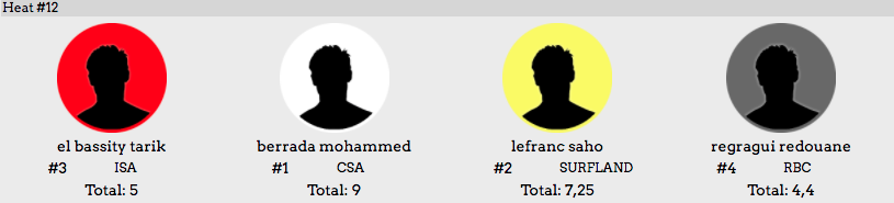 Comme l'élimination du teneur du titre du champion du Maroc en Surf open, Redouane Regragui ainsi que le champion du Maroc en Longboard, Tarik El Bassity, face au champion du Maroc en Surf Master, Mohamed Berrada et la pépite marocaine Lefranc Saho lors d'une série très serrée.