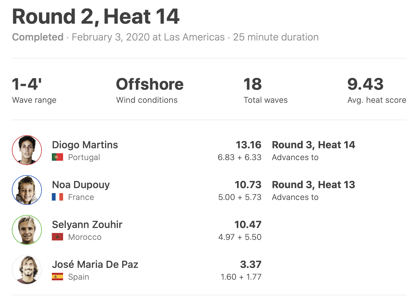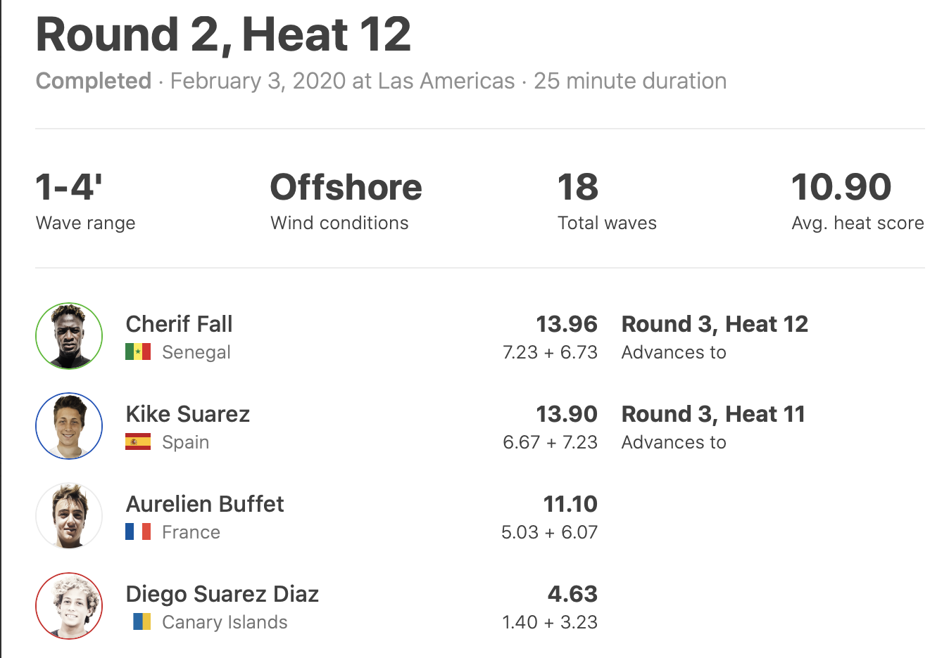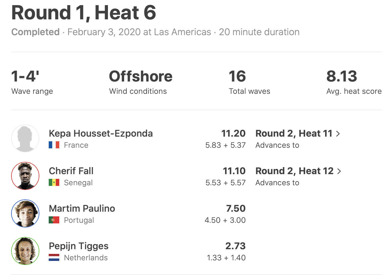 La première journée a été connu son lot de défaites et victoires pour les compétiteurs marocains et sénégalais au Cabreiroa Pro Las Americas, puisque plusieurs n'ont pu se qualifier au Round 3