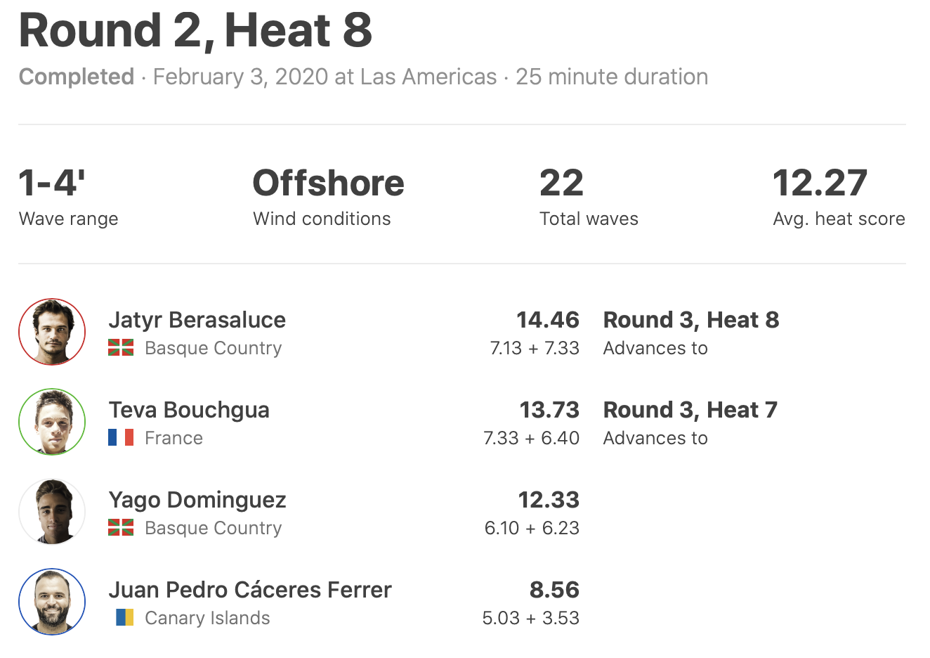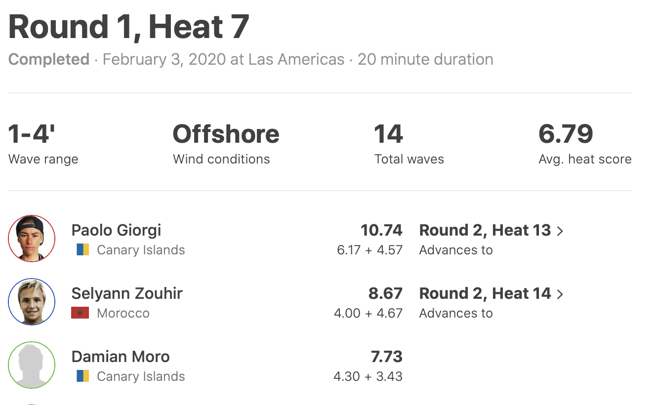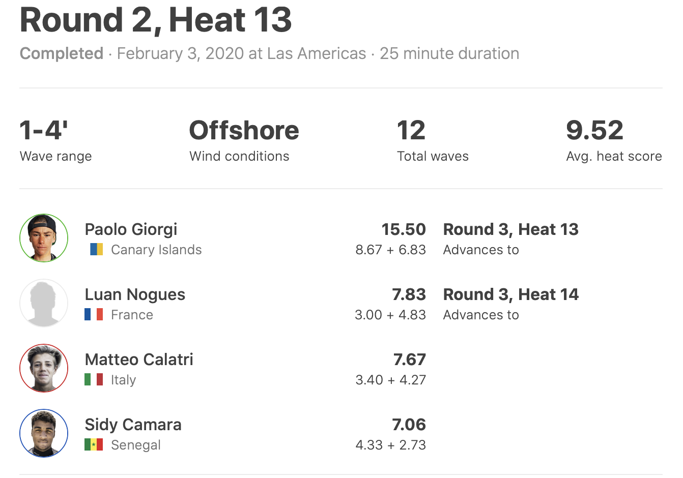 La première journée a été connu son lot de défaites et victoires pour les compétiteurs marocains et sénégalais au Cabreiroa Pro Las Americas, puisque plusieurs n'ont pu se qualifier au Round 3