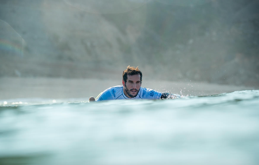 Ramzi Boukhiam lors du quart de finale du Meo Portugal Cup Of Surfing