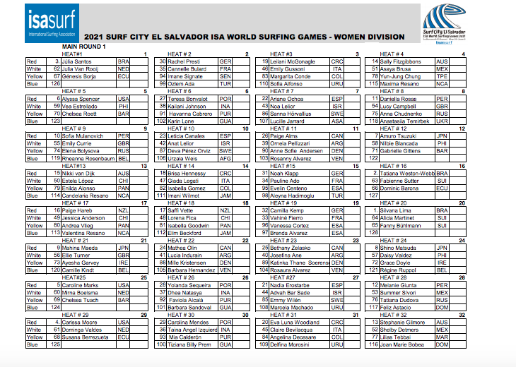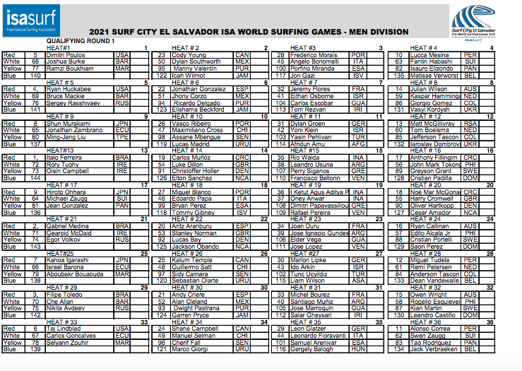 - Le classement final des 15 surfeurs et des 13 surfeuses déjà qualifiés ne sera pas pris en compte.
