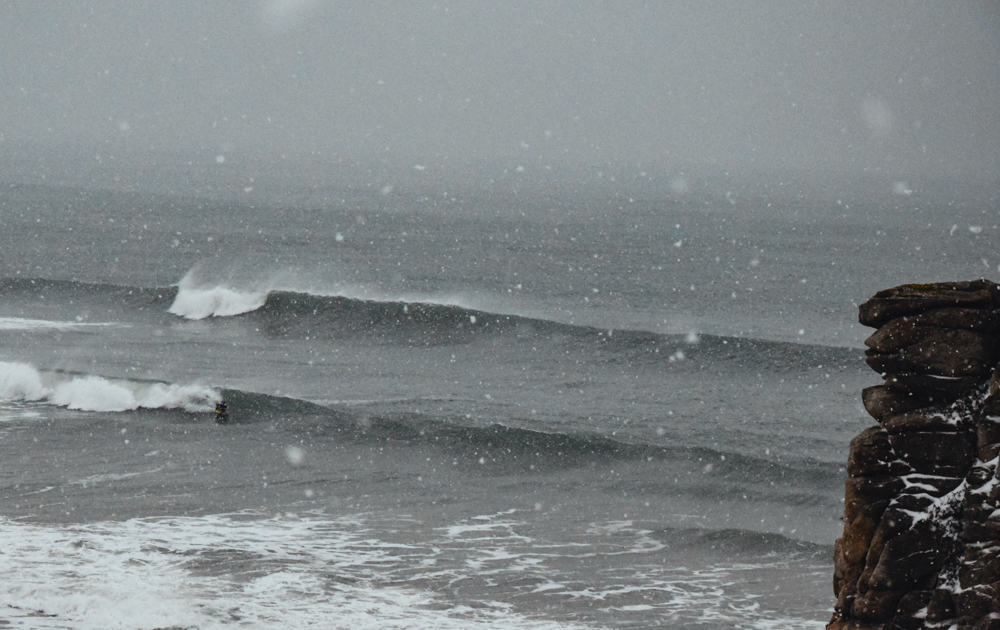 Beaucoup de surfeurs du coin avaient déjà checké les prévisions depuis quelques jours et anticipaient plusieurs sorties à l'eau. De notre côté, nous avions pris le temps d'analyser les cartes et les modèles pour vous annoncer dès le lundi des conditions 3 étoiles sur les côtes ouest et sud de la Bretagne : tout le monde avait donc vu juste, car le swell et le vent off-shore ont été au rendez-vous, tout comme l'air glacial et la neige qui se sont invités à ce spectacle grandiose et ont rendu les conditions dans l'eau encore un peu plus extrêmes. Récit d'une semaine pas comme les autres dans le Sud Bretagne...