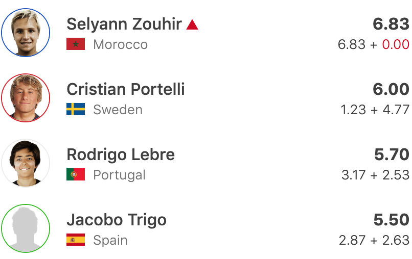 En round 4, Selyann continue sur ses belles prestations et récupère son ticket pour le round 5 en scorant deux vagues à 6.67 & 4.90 pour un total de 11.57 points