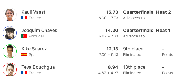 Ce matin se sont déroulés les Round 5, derniers rounds avec des séries de quatre surfeurs avant les phases finales.