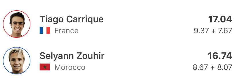 Selyann pouvait aller loin lors de cette question mais il était freiné par Tiago Carrique lors de la demi-finale et ce malgré une excellente performance du jeune Casablancais, en effet Selyan a scoré 16.74 points mais lui manquer 0.31 points pour dépasser son adversaire.