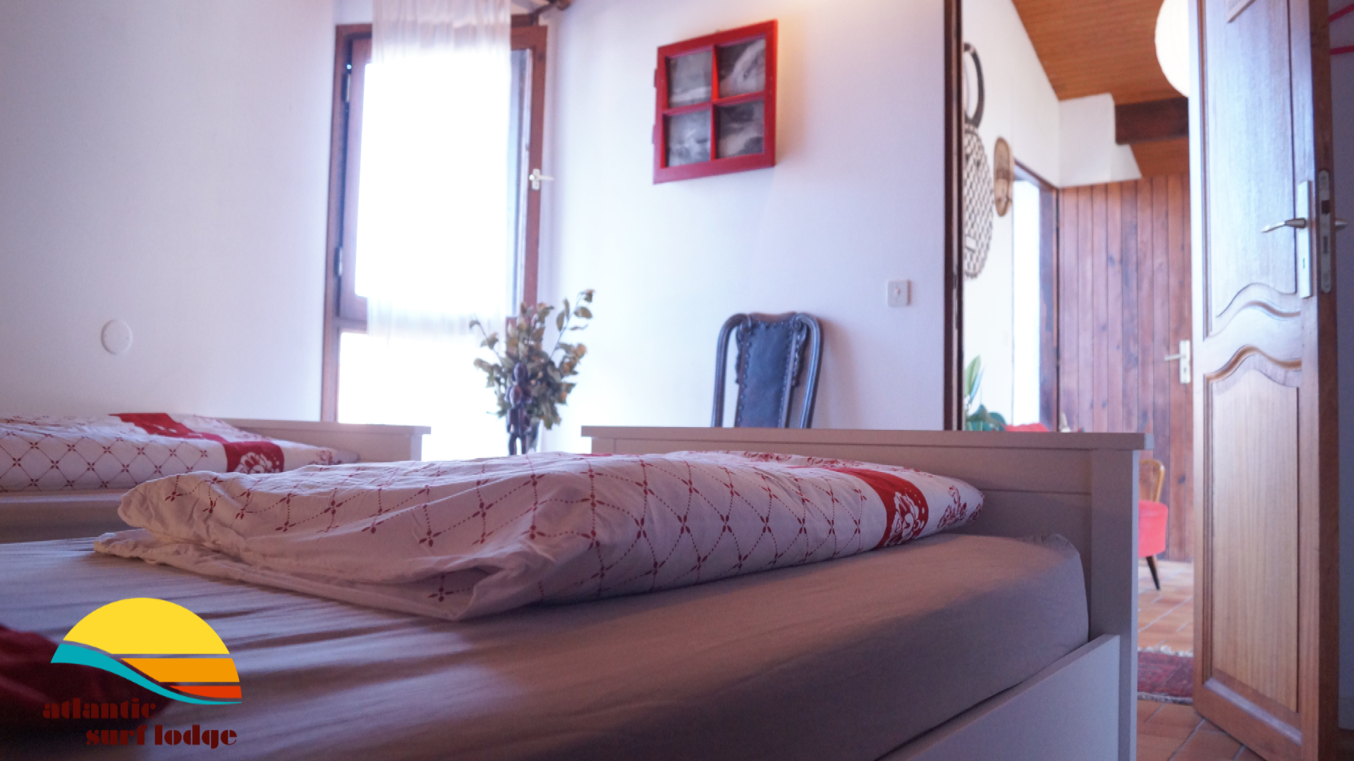 "Venir passer un moment à Atlantic Surf Lodge, ça commence par le choix d'un hébergement de qualité. On oublie les hôtels sans âme et les usines à touristes : le Lodge est une maison landaise, dans un quartier tranquille de Vieux Boucau. Il y a plusieurs possibilités de chambres : du dortoir à 5 lits simples (pas de lits superposés) jusqu'à la chambre double avec salle de bain privative. Bien dormir c'est important, mais bien manger aussi ! Le petit déjeuner se décline en version buffet sucré-salé avec tout ce qu'il faut pour se préparer un bon sandwich pour midi. Le soir, l'équipe cuisine prépare un repas chaud avec sur demande des alternatives végé et vegan. Après un bon repas et une bonne nuit, il est temps de passer à l'action ! Et il y a le choix : Cours de surf par des moniteurs confirmés et passionnés en formule 10h ou 20h / semaine, cours de yoga, vélos en accès libre, skate, ping-pong ou farniente dans le grand jardin avec une boisson fraîche ! Choisir Atlantic Surf Lodge c'est aussi aller à la rencontre de locaux qui connaissent la région et qui sont prêts à partager (presque) tous ses secrets."