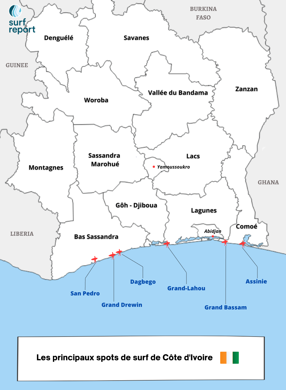 km de la ville de Sassandra dans cette zone, il y a de nombreux spots moins