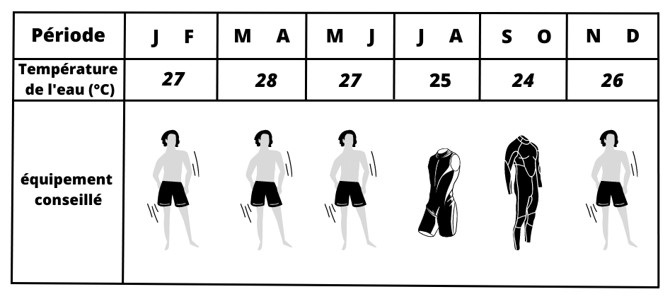 toute l'année et ne descend en moyenne jamais en dessous de 23 degrés. Mais il vaut