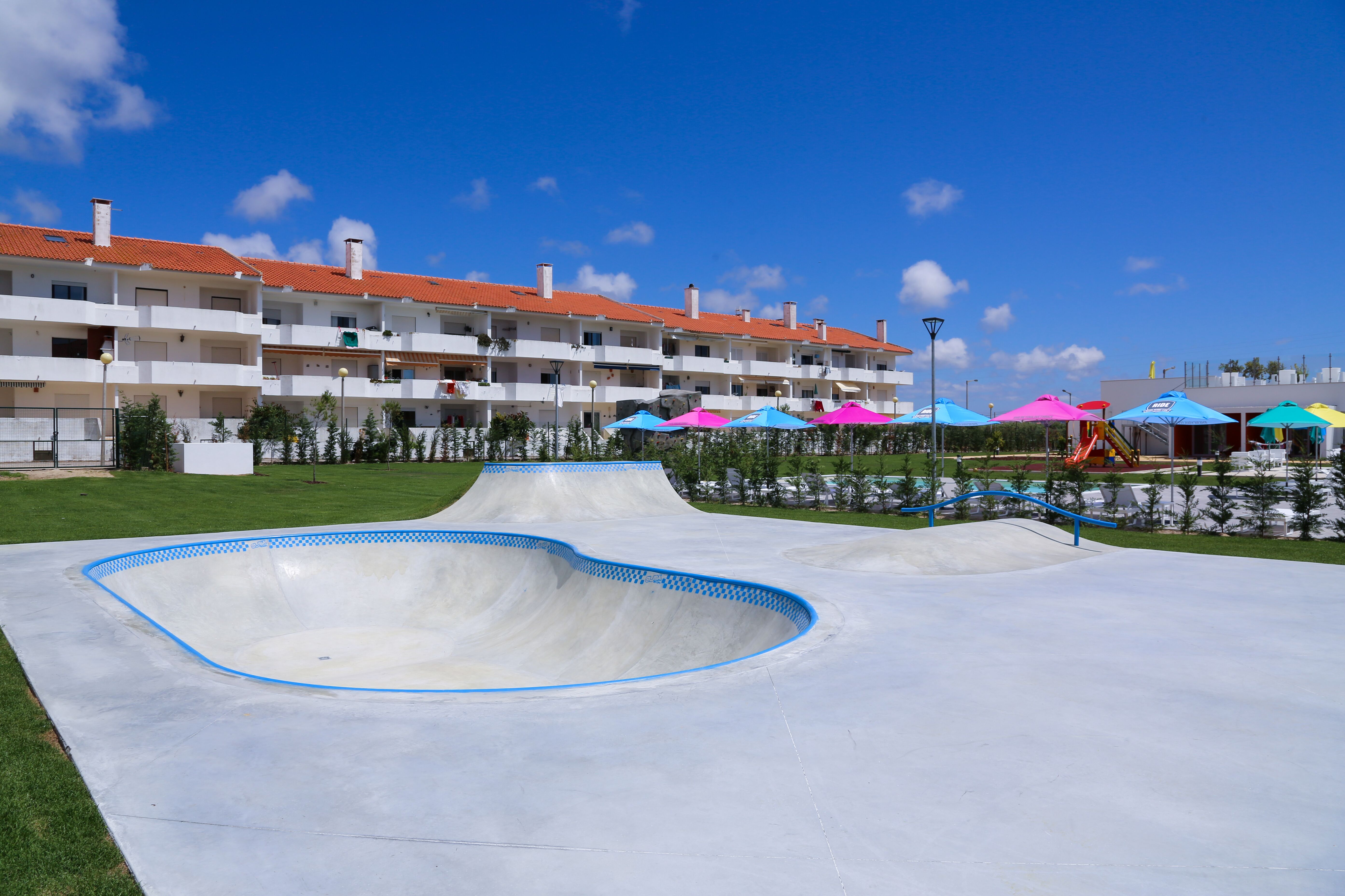 Situé à seulement 400 mètres de la plage, le Resort bénéficie d'un emplacement unique et privilégié, à proximité de la vie nocturne, des restaurants et de nombreux lieux culturels. Ce complexe est le seul au Portugal qui permette aux clients de participer à des cours collectifs ou privés dans 3 sports différents: le surf, le skate et le vélo.