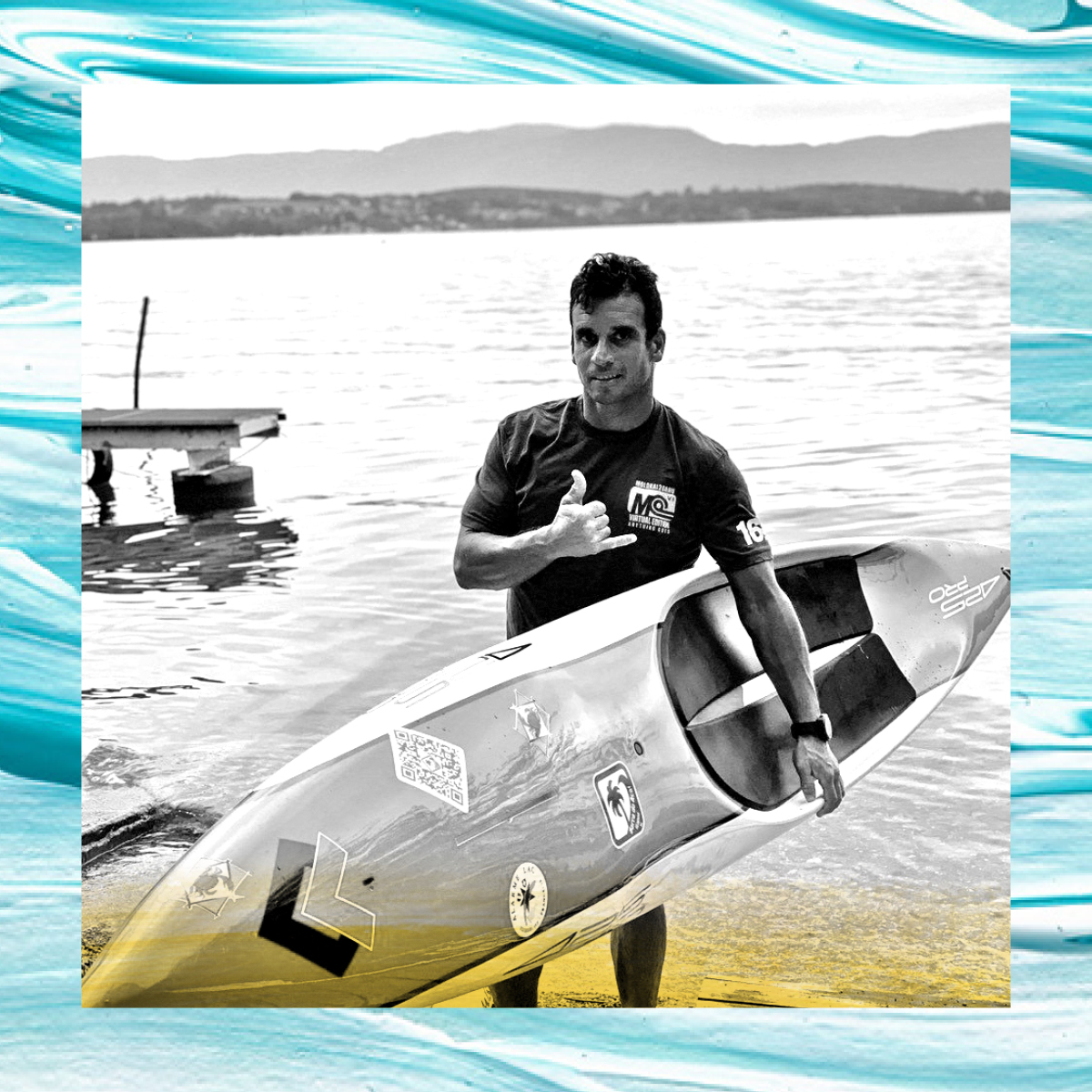 "Leandro nous vient tout droit du Brésil. Professeur d'EPS, ce passionné de la mer est un vrai compétiteur qui pratique le surf, le SUP race, le foil et le prone."
