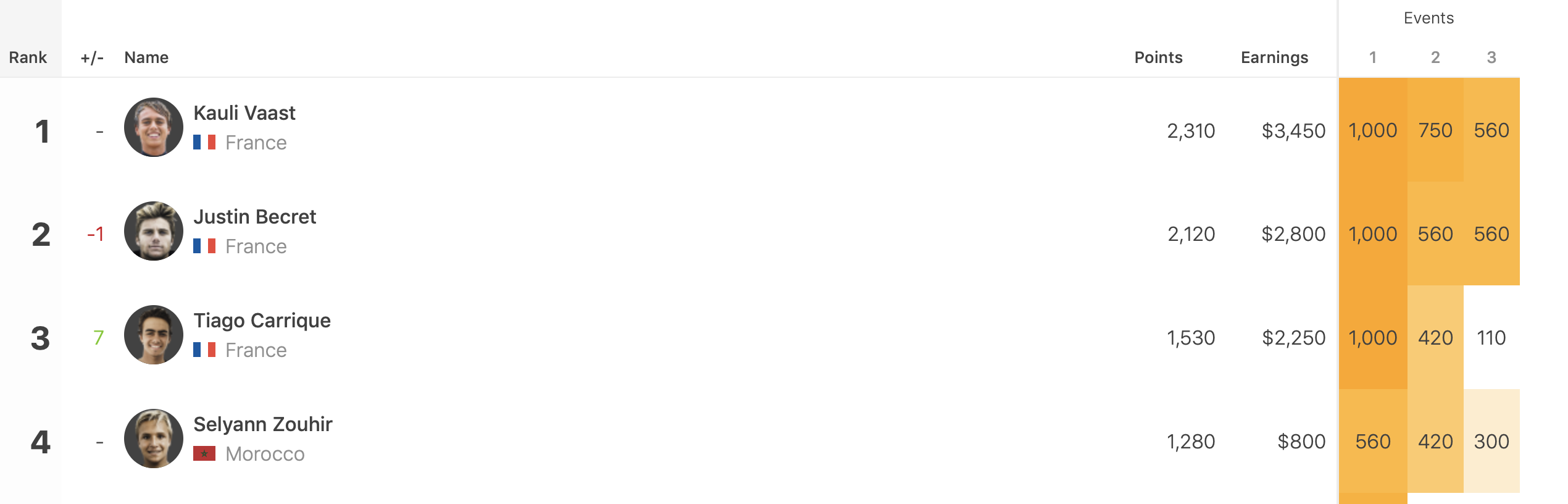 Selyann Zouhir réalise un bonne première partie de saison en se classant 4eme du circuit QS Junior européen grâce à ses trois premiers events .
