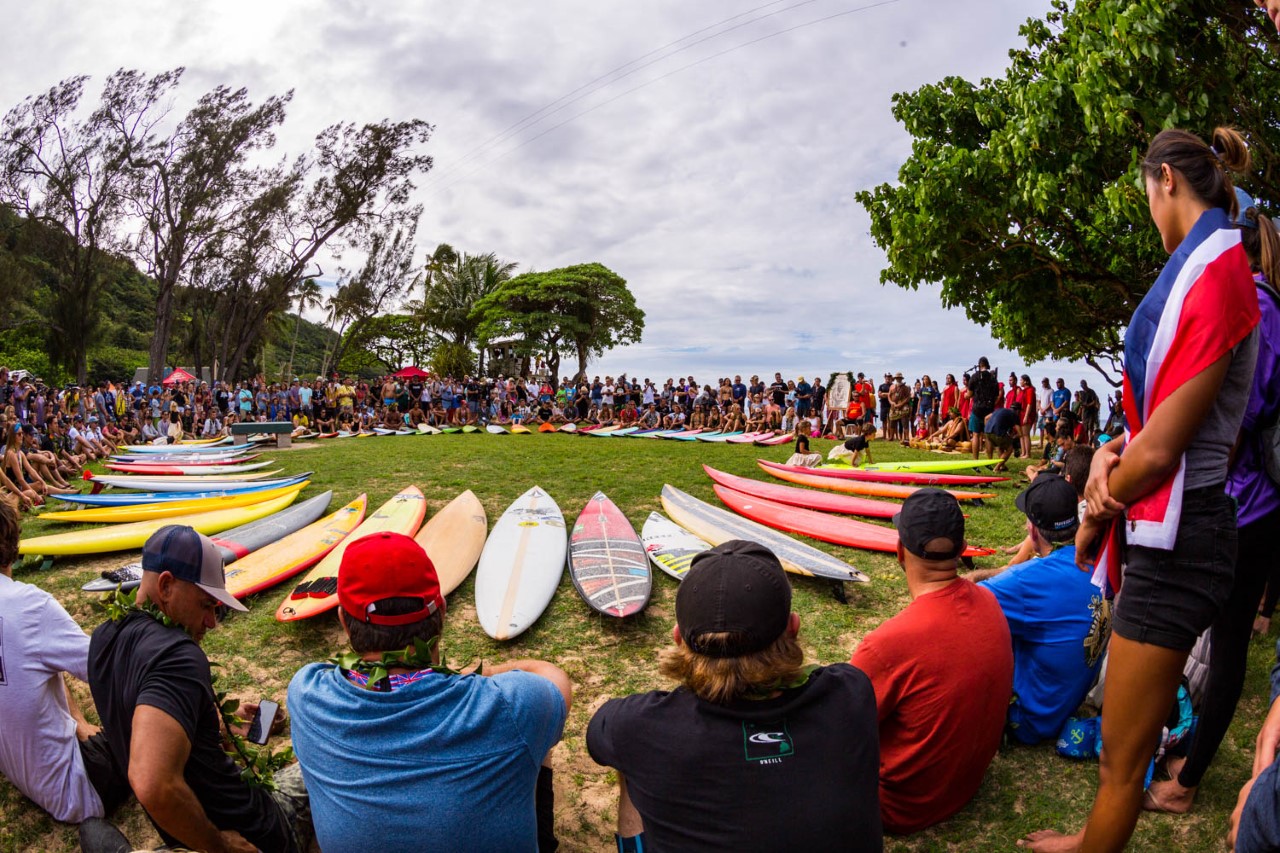Hier, la famille Aikau et les big wave riders invités se sont donc recueillis près du spot de Waimea. Et désormais, il faudra patienter et attendre l'arrivée de vagues de 20 pieds hawaïens, taille minimum requise pour lancer l'event, atteindre la baie de Waimea. Comme ce fut le cas en 2016 avec la victoire de John John Florence, également la dernière fois que l'Eddie Aikau a eu lieu.